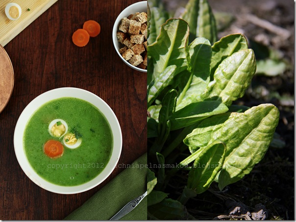 Po świętach szczaw z ogrodu przywiozłam i zupę zrobiłam. Pierwsze listki rwałam i kierowałam prosto do buzi. Jak dzieciak… - powiecie… Ale…, co tam. Dużo we mnie z tego dzieciaka… I dobrze. Chyba… Sama nie wiem, ale nie jest mi z tym źle. Podjadałam tylko trochę, bo czasu było niewiele, ale już o zupie myślałam. O pierwszej szczawiowej w tym roku. Mojej ulubionej. Jajeczka przepiórcze jeszcze zostały, więc taka smaczna zupa trochę “z niczego” powstała.