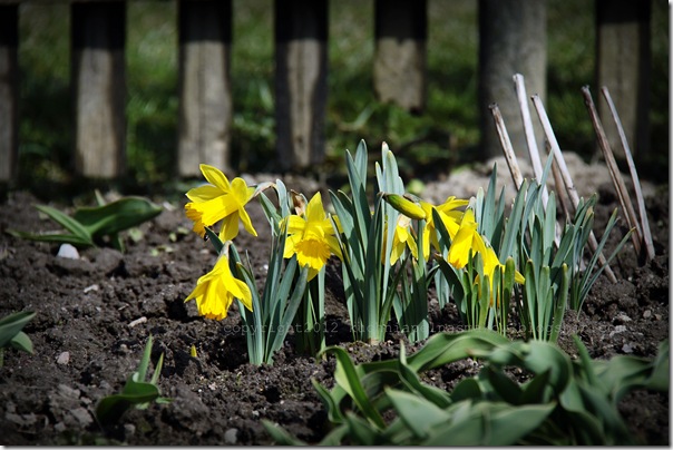 W poniedziałek świąteczny odważne żonkile w ogródku nieśmiało zaczynały patrzeć w słońce(w końcu dzień wcześniej leżał na nich śnieg…). Zerwałam te jeszcze w pączki zamknięte, choć jednocześnie chciałam zostawić… Wiedziałam jednak, że przez ten czas nie będzie nikogo, kto bym im w oczy spojrzał, bo mama jeszcze w sanatorium, więc namówiłam je na podróż…, aby później w domu w pełni cieszyć się ich urokiem.