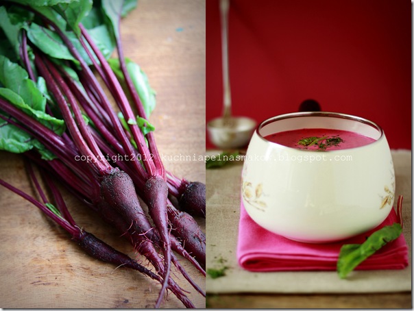 1. Botwinkę zalać taką ilością wody, aby ją przykryła. Osolić, zagotować - buraczki muszą być miękkie. Ostudzić.